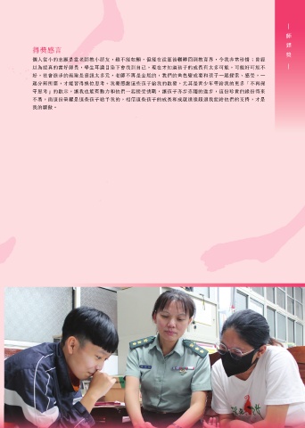 守思考」的啟示,讓我也能有動力和他們一起接受挑戰,讓孩子亦步亦趨的進步,這份珍貴的緣份得來