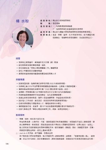 • 創辦直笛社團,指導的唐氏症學生榮獲 2022 年總統教育獎。 自己的教學生涯進行深刻的回顧和省思。彰化啟智學校是我正式教職的第一所學校,也是我教職生涯