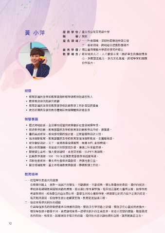 職 稱 / 教師 打造更好的自己,從和教學夥伴努力成長開始。喜歡參加研習,也熱衷舉辦活動,對不同領域更