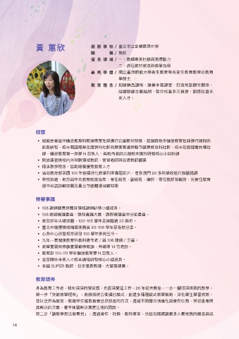 黃 蕙欣 服務學校 / 臺北市立金華國民中學 效,如民國100年協助教育部拍攝活化教學影片示例,倡議「認知要有趣、情意要深刻、技能要生活化、
