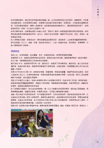 • 用愛經營:獲臺中市友善校園獎優秀輔導人員及卓越學校殊榮。 僅能成就有愛友善的優質校園,也能造就一位好校長。