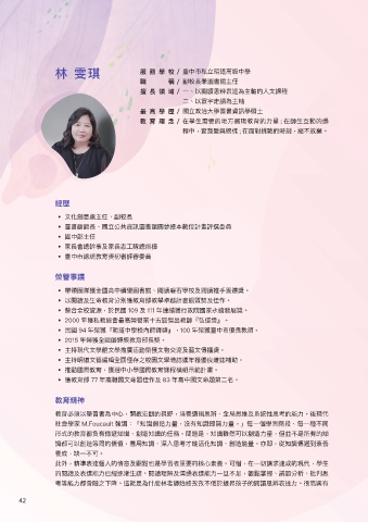 最高學歷 / 國立政治大學圖書資訊學碩士 39 年來林老師樂於當個提燈引路的園丁,堅持盡所有可能引導每一個孩子在明道發現自己。