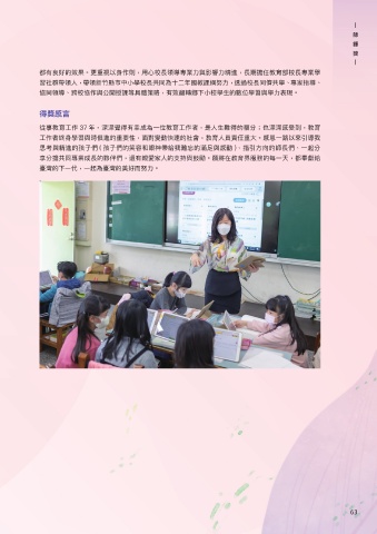 目標。蔡校長長年用心營造學校學習文化,重視校務經營創新與教學創新,引導教師成為有效教學的