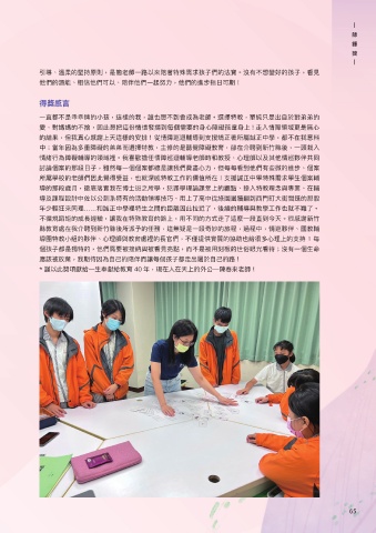 有一個生命應該被放棄,用愛陪伴將使他們找到各自 中;當年因為多重障礙的弟弟而選擇特教,主修的是聽覺障礙教育,卻在介聘到新竹縣後,一頭栽入