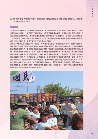 醒,讓我在實踐教育理想時不孤單。感謝一路提攜指導我的師傅校長、主任和教授、專家們,您們帶