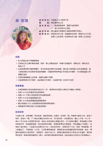 育的目標,讓學校績效整體向上提升。蔣老師引進各種學習資源,協助弱勢孩子找到自己的優勢能力,