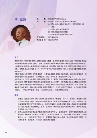 李克讓先生,1952 年於成功大學機械工程學系畢業。畢業後在臺灣電力公司服務,1958 年赴美國德