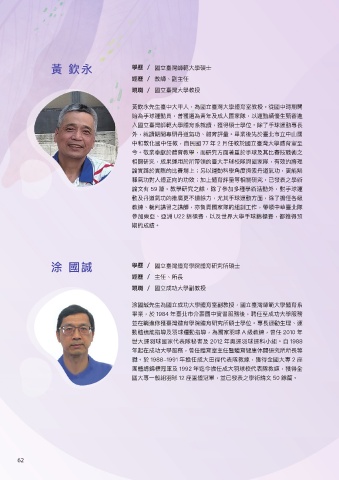 黃欽永先生臺中大甲人,為國立臺灣大學體育室教授。從國中時期開 陳寒濤先生為國立成功大學工學院機械系特聘教授,高雄市人,國立