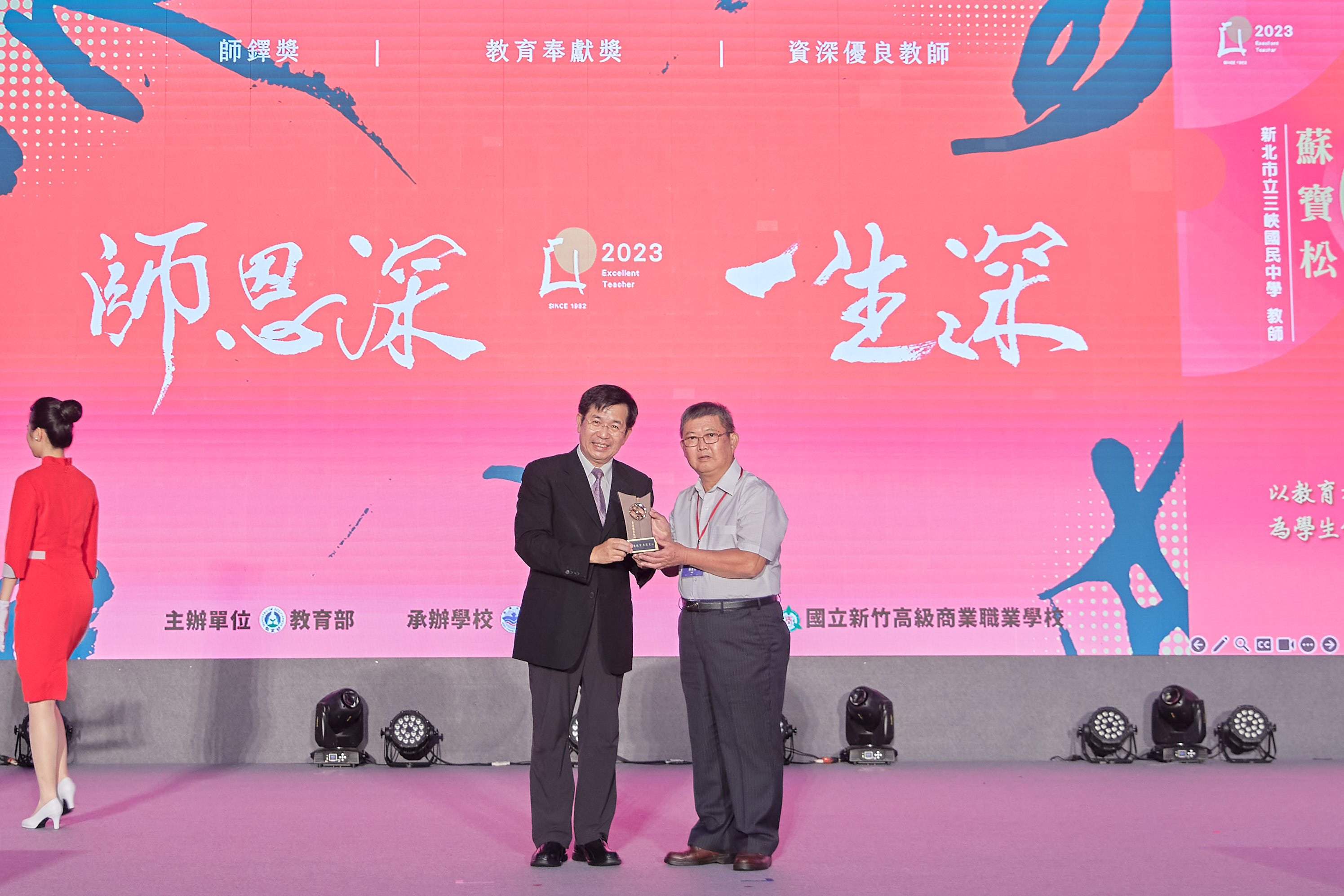 蘇寶松先生畢業於國立臺灣師範大學社會教育系,嘉義人,現為新北市立三峽國民中學英語科專任教師。蘇老師自幼家貧,少時即立志為人師表,國中畢業後,以優異成績考上省立嘉義師專。民國69年嘉師畢業後,分發至桃園縣大園鄉圳頭國小服務,期間參與指導各項比賽,舉凡教具製作、美術舞蹈及體育,均能在縣級比賽中,屢獲佳績。民國77年憑藉優異服務成績與在校成績,保送國立臺灣師範大學英語系,後轉入社會教育系社工組,英文輔系就讀,民國80年師大畢業分發至臺北縣三峽國中擔任英文老師迄今,國中任教生涯中,蘇老師最感自豪的是,在變遷的教育環境中,秉持對教育的熱忱,每年均自願擔任導師,連續29年,直到民國109年因心臟不適及身體不佳,才退下導師職,擔任專任教師。國小、國中連續35年的導師工作在品德與學業兼顧下,作育無數英才,可謂桃李滿天下。