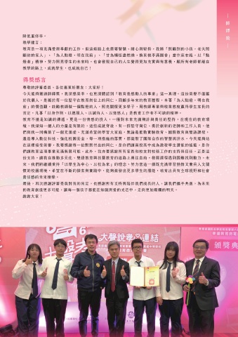 今天能夠獲頒師鐸獎,我深感榮幸,也更深體認到「教育是感動人的事業」這一真理。這份榮譽不僅屬