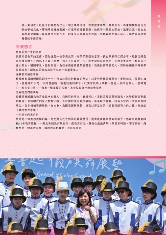 我很珍惜教育的工作,因為這是一份春風化雨、為孩子點燈的志業,我也常和同仁們分享,能當老師是