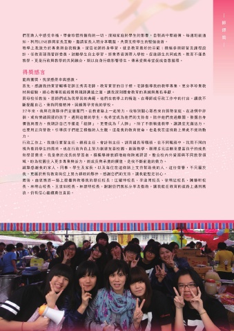 材與經驗,細心教導班級經營與親師溝通之道,讓我深刻體會教育的真誠與無私奉獻。