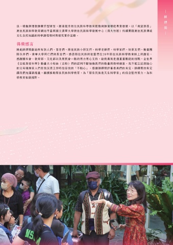 密關連,開啟對科學的興趣,同時喚醒大家對原住民族科學教育的信心。我相信真正的科學教育與真