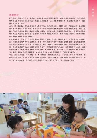 長,對幼兒園行政與教學的全力支持;感謝小學行政團隊的協助,使園務能順利推展。也特別感謝榮譽