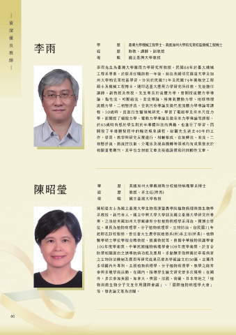 陳昭瑩女士為國立臺灣大學生物資源暨農學院植物病理與微生物學 林俊彬先生為國立臺灣大學牙醫專業學院特聘教授,臺北市人,國